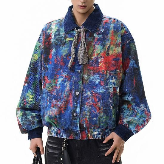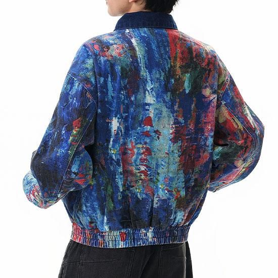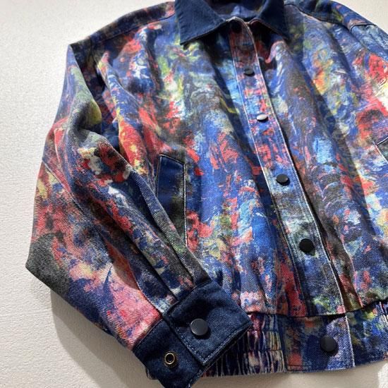 オーバーサイズデニムジャケット「グラフィック・インク」。