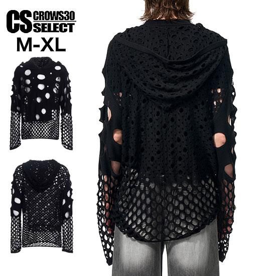 [CROWS 30 SELECT]クラッシュメッシュフードニットパーカー