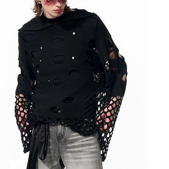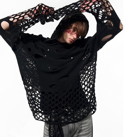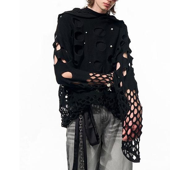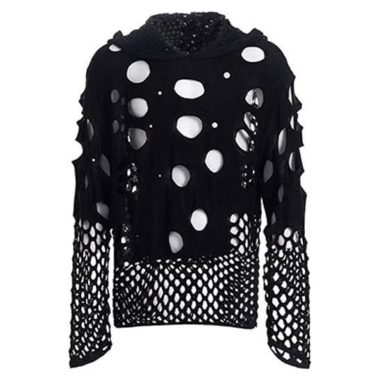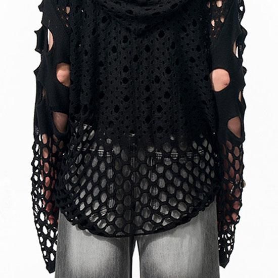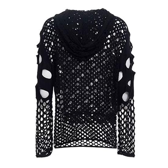 大小さまざまな穴をデザインしたメッシュ風フードパーカー。