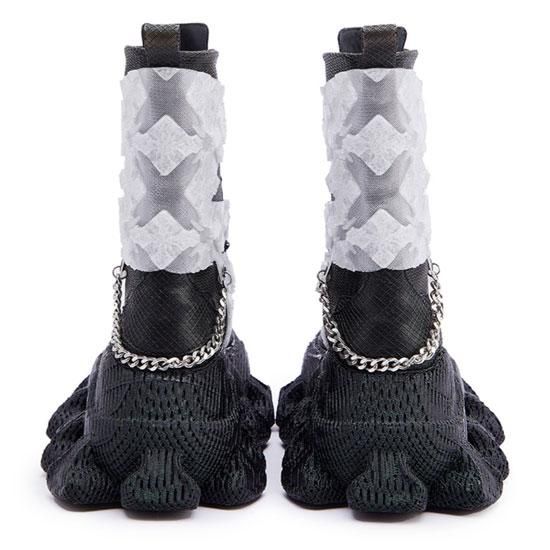 8cmの厚底ソールと3DプリントTPU素材を使用し、