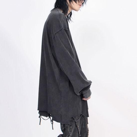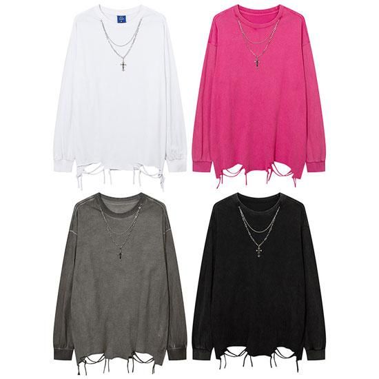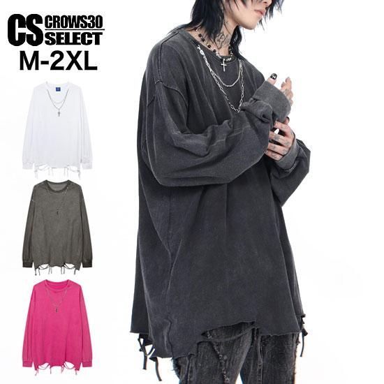 V系 ロンT メンズ ダメージ モード系 ロングTシャツ メンズ トップス ネックレス オラオラ系 ロングTシャツ メンズ カットソー ヴィジュアル系 ファッション 30代 40代 50代 60代 ス