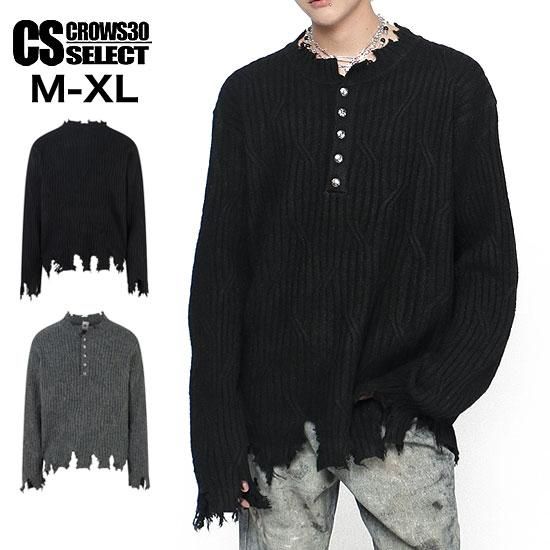 [CROWS 30 SELECT]クラッシュハードヘンリーネックニットソー