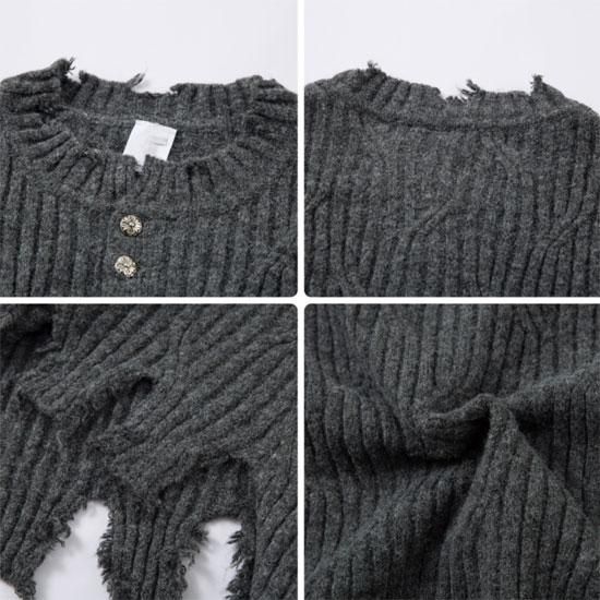 切りっぱなしの裾や袖に大胆なダメージ加工を施した、