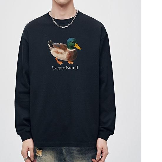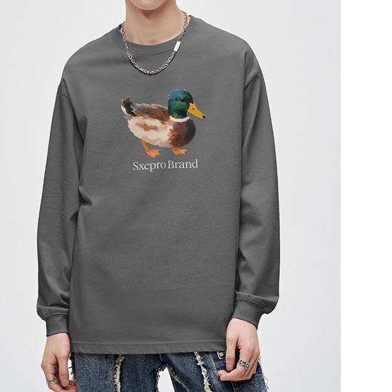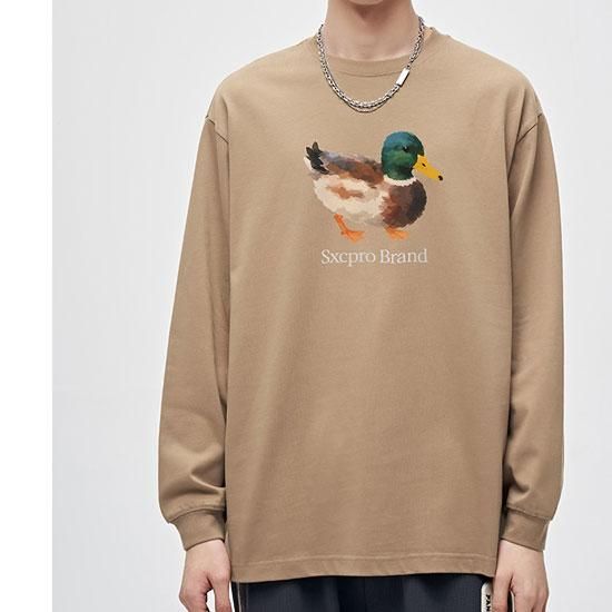 V系 メンズ Tシャツ 長袖 メンズ モード系 ロングTシャツ メンズ オラオラ系 Tシャツ メンズ 長袖 カットソー カルガモ アヒル アニマル ヴィジュアル系 ファッション 30代 40代 50代