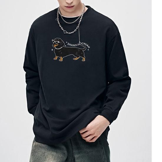 V系 ロンT メンズ モード系 ロングTシャツ メンズ オラオラ系 Tシャツ メンズ 長袖 カットソー 犬 ワンコ ダックス アニマル ヴィジュアル系 ファッション 30代 40代 50代 60代 ス