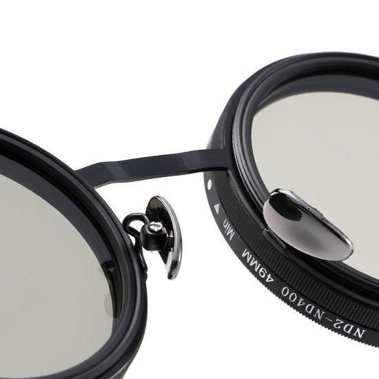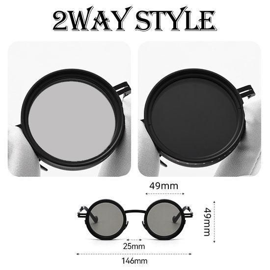 カメラレンズ風のユニークなデザインが魅力的な2WAYサングラス。