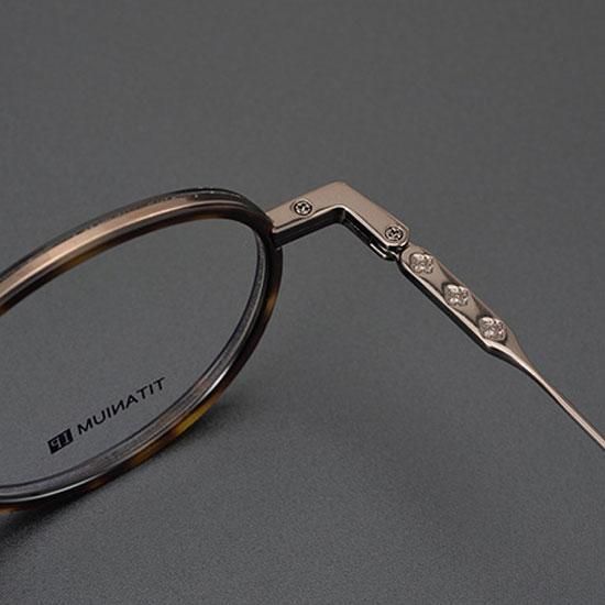 純チタンを使用した軽量で丈夫なラウンド型眼鏡。