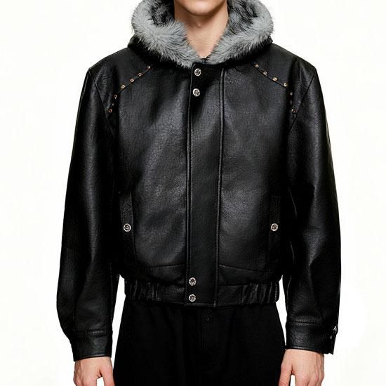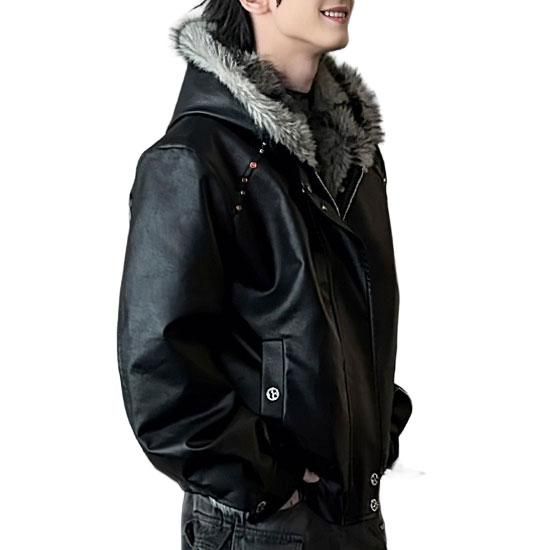 [CROWS 30 SELECT]ファーフード付きオーバーサイズライダースジャケット