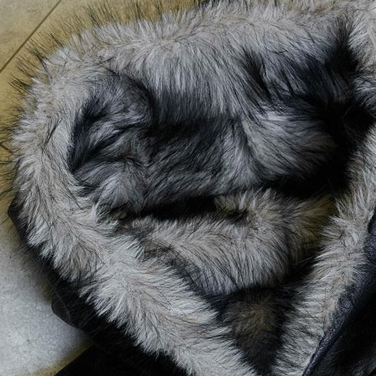 身頃と袖の裏地全体に施された毛足の長いボアファーが、