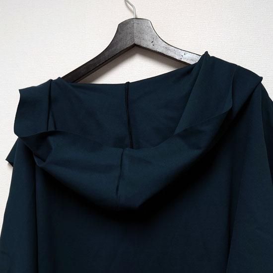 首元の変形ドレープとリラックス感のあるドルマンシルエットが