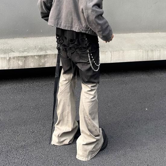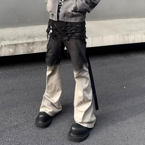 目を引くフレアデニム。