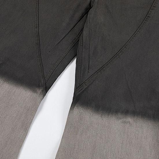 足元で溜まるシルエットが独特の重厚感を演出します。