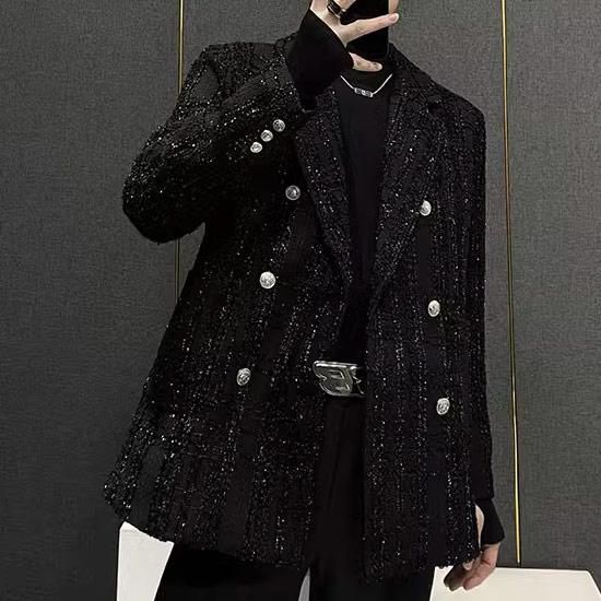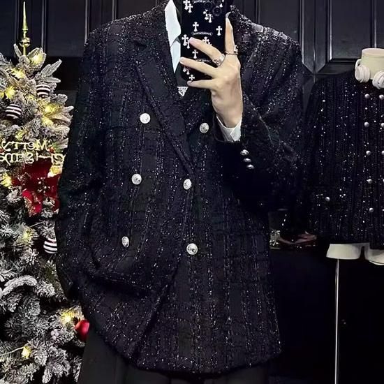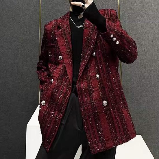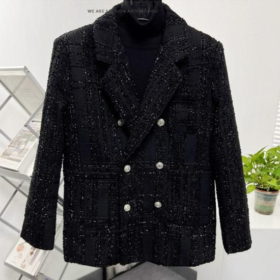 [CROWS 30 SELECT]ラメ糸仕様チェックダブルウールコート