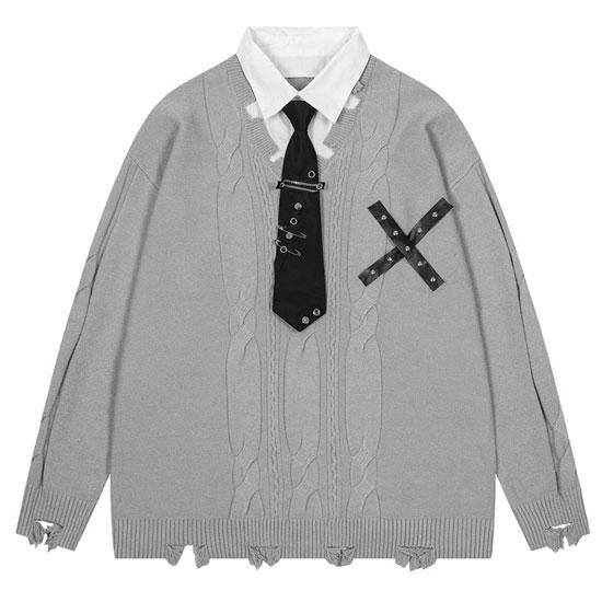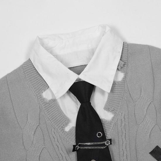 [CROWS 30 SELECT]ネクタイ付パンク装飾フェイクレイヤードニット
