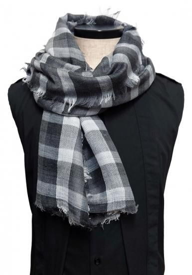 [Alleglo×CROWS]ブロックチェックカットオフ大判ストール